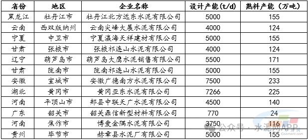 表:2026年計(jì)劃新投熟料生產(chǎn)線信息