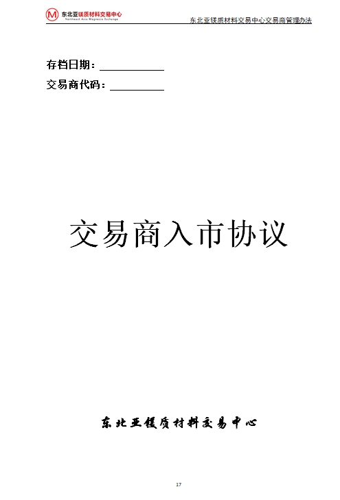 (四)按照《東北亞鎂質(zhì)材料交易中心入市協(xié)議》的規(guī)定向交易中心繳納相關(guān)費(fèi)用;
