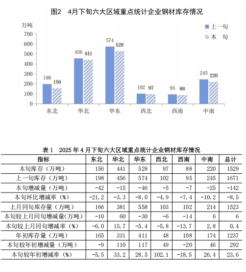 4月下旬重點企業(yè)鋼材庫存旬報