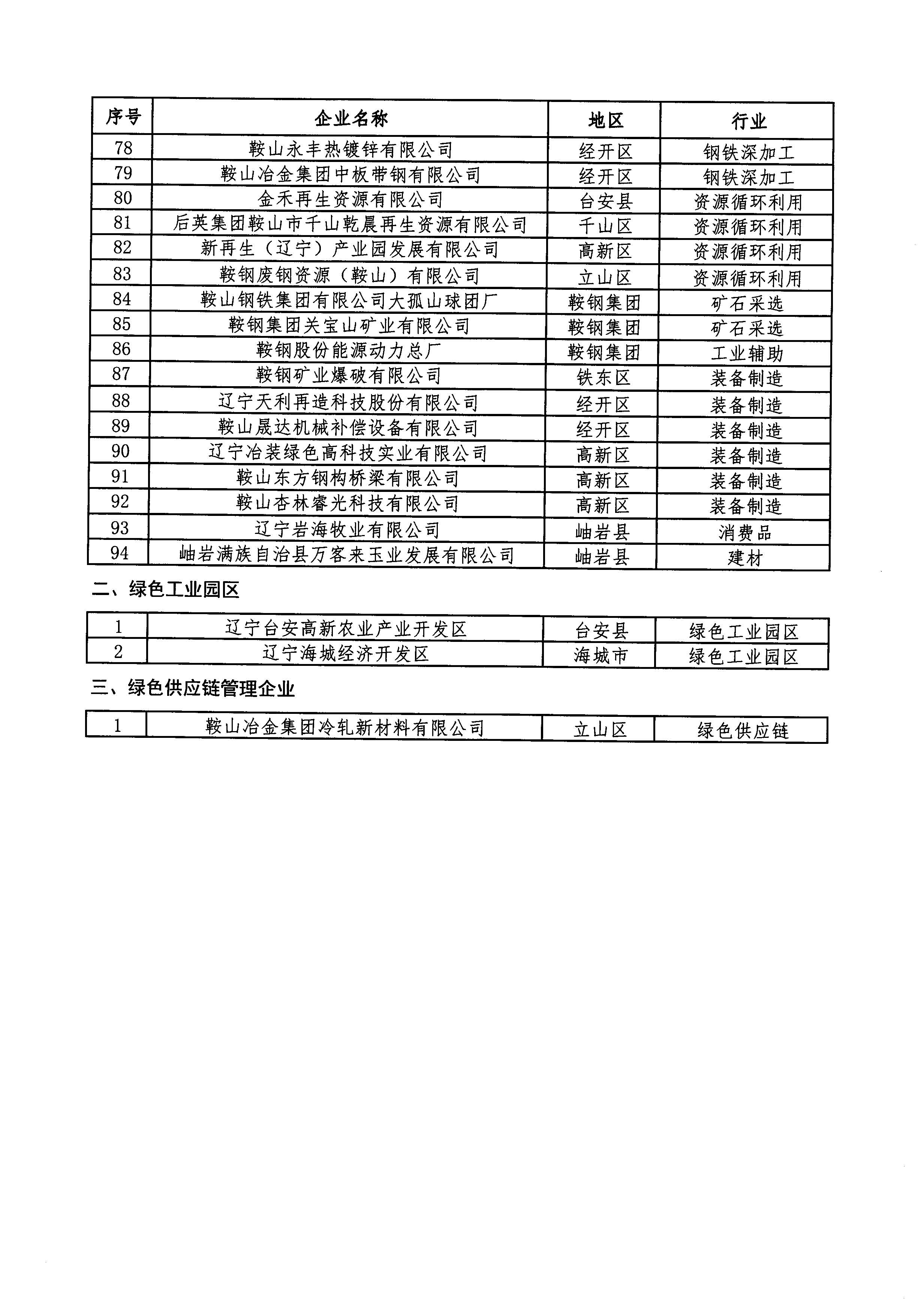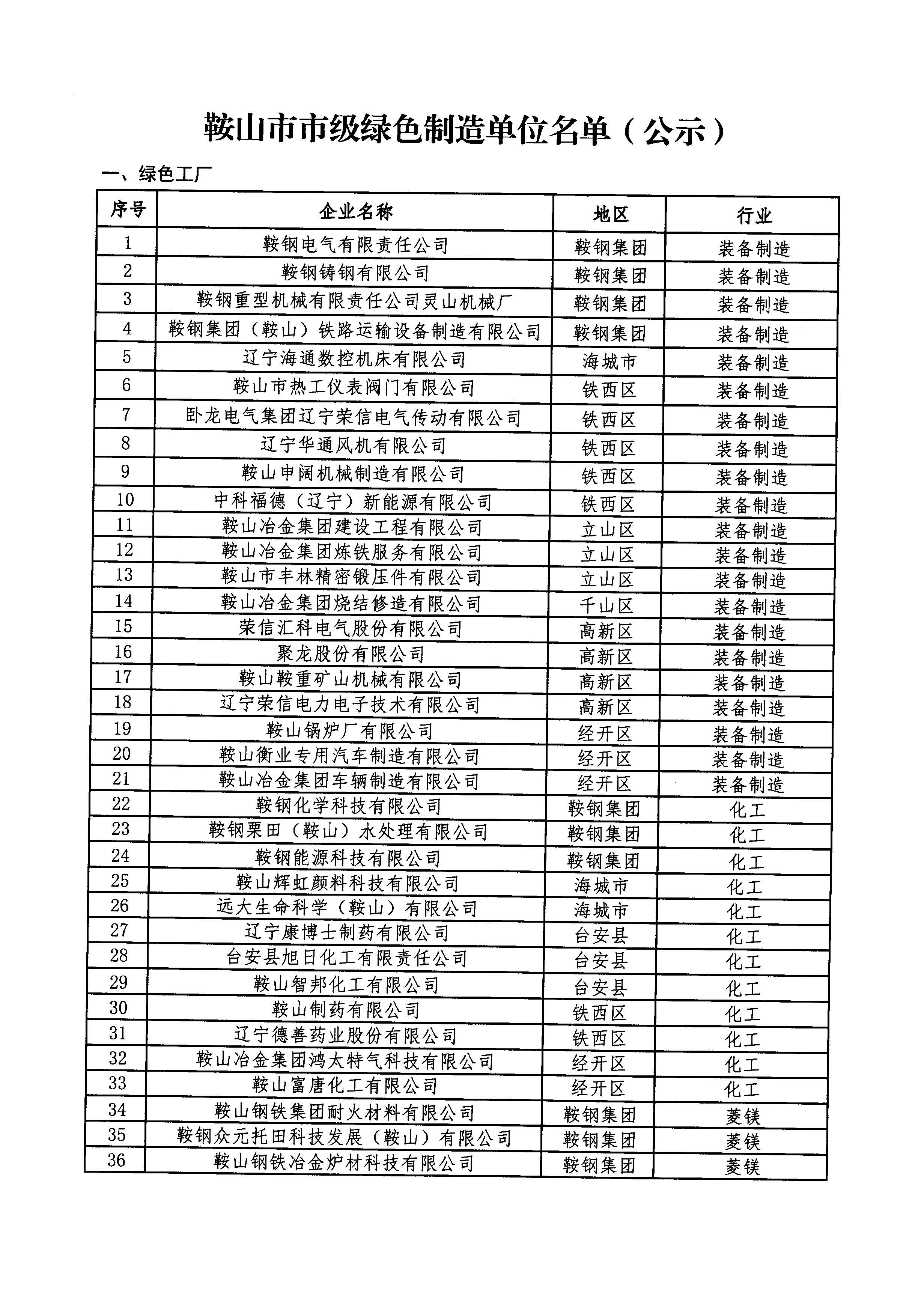 附件:鞍山市第一批市級(jí)綠色制造單位公示名單